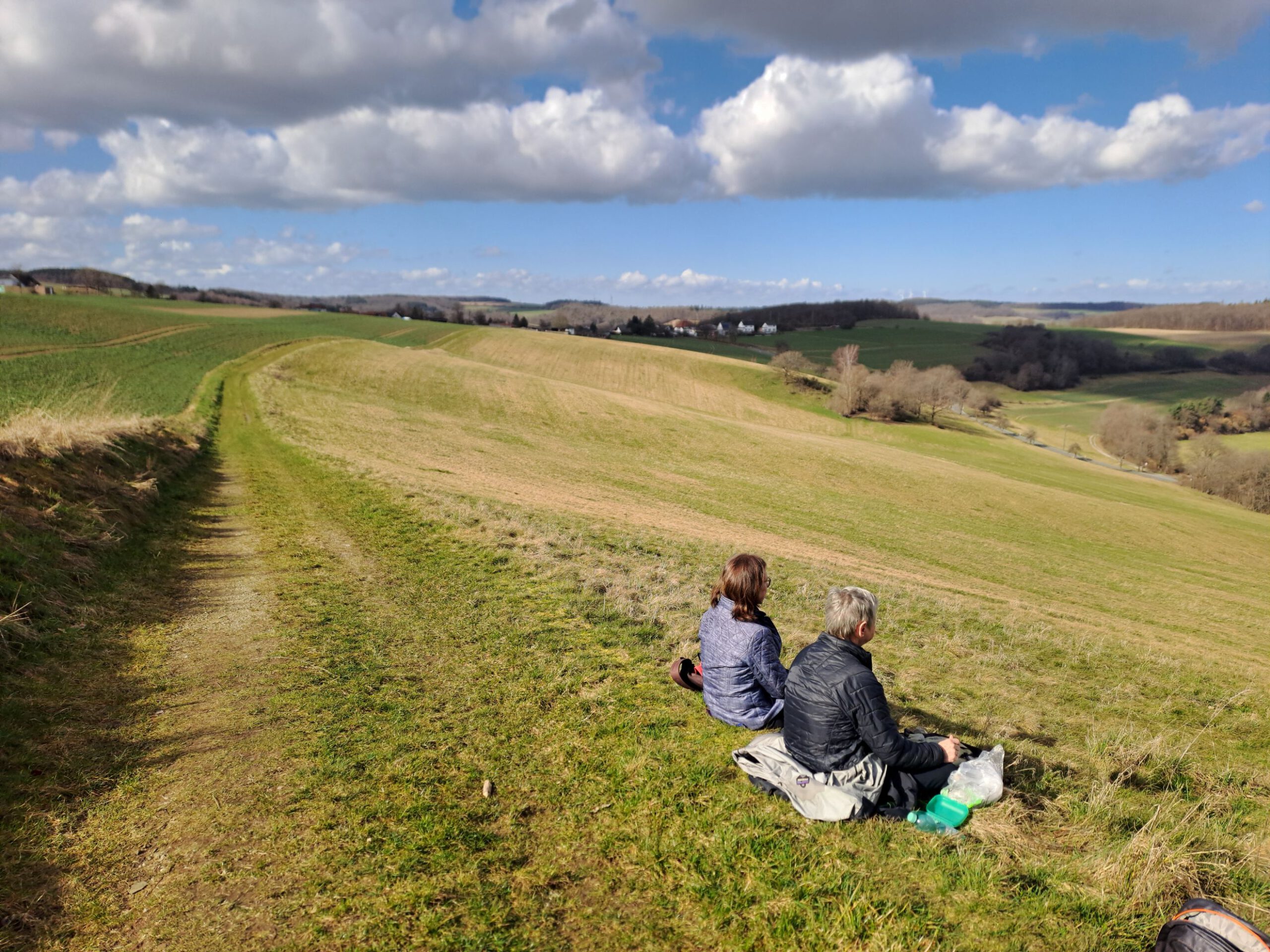 Bei herrlichem Frühlingswetter wanderte die Gruppe zunächst ein Stück durch offene Landschaft bis zum Waldrand. Nach einem kurzen Stück durch den Wald, gelangten die Wanderer zur „Philippseiche“, wo es in der gleichnamigen Hütte eine erste Pause gab. Der Weg führte weiter durch Wald, Felder und Wiesen. Inmitten von diesen, fand man einen wunderschönen Platz für die Mittagspause. Während die Wanderer sich stärkten, konnten sie die herrliche Aussicht in die Landschaft genießen. Sie hatten auch einen schönen Blick auf das alte Bahnhofsgebäude von Heinzenberg, welches von 1909 bis 1969 in Betrieb war.